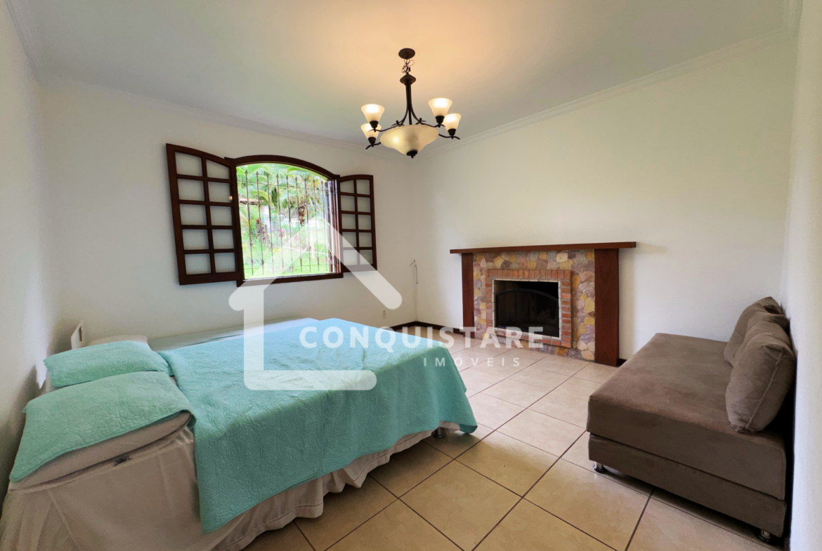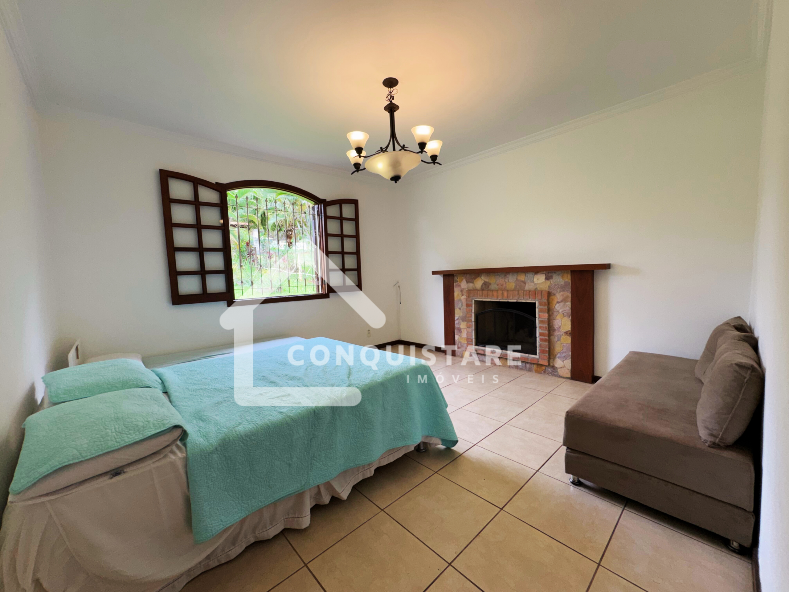 ● Suíte Master: Quarto de casal aconchegante com lareira, ideal para o clima de